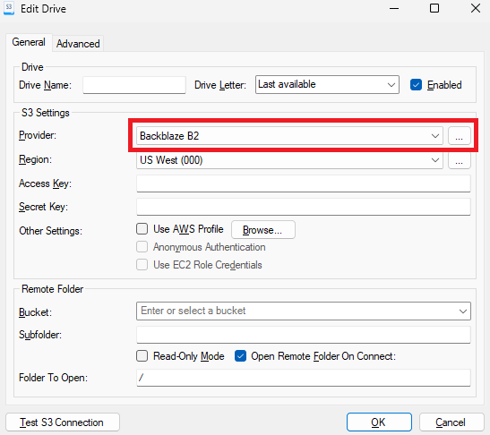 Connect to Backblaze B2 with S3 Drive